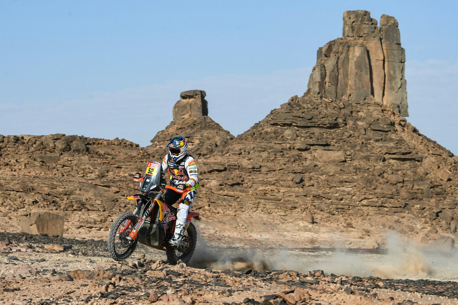 De editie 2022 van de Dakar is een spannende. Voor de derde opeenvolgende dag, kreeg de wedstrijd een nieuwe leider. Voormalig Dakar-winnaar Mathias Walkner neemt op drie etappes van het einde de leiding over van GASGAS Factory-rijder Sam Sunderland. De leiding blijft dus in de Pierer Mobility-familie en daar zullen in Matighofen maar wat blij om zijn. De dagzege moest KTM dan wel aan Monster Energy Honda gunnen. José Ignacio Cornejo Florimo, wat een naam, was de snelste in de 287 km lange lus tegen de klok rond Wadi Ad Dawasir. Het was de dag van de Amerikanen, in de breedste zin van het woord, want Kevin Benavides eindigde als tweede (op 1’26”), terwijl de winnaar van 2020 Ricky Brabec (op 1’47”) als derde binnenkwam. Oostenrijker Mathias Walkner had aan een vierde tijd (op 2’06”) van Cornejo genoeg om de leiding te pakken.