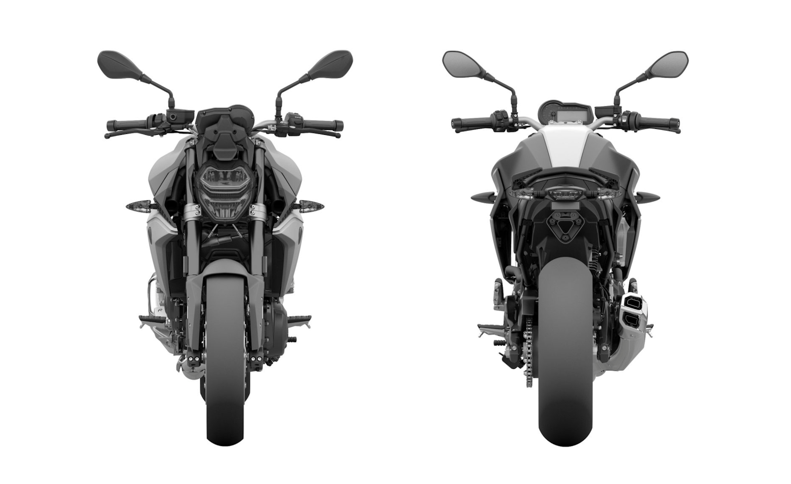 De F 850 R toont, op de designschetsen althans, alvast een stuk bonkiger, agressiever en gespierder dan z’n voorganger(s). Het minimalistische front lijkt wel een hoofdknikje in de richting van de Japanse concurrentie (Yamaha MT-09 en Kawasaki Z900). Of zet BMW met deze nieuwe ‘naakte middenklasser’ de aanval in richting KTM’s Duke 790 (die voor 2020 naar een 890-versie zal evolueren)?