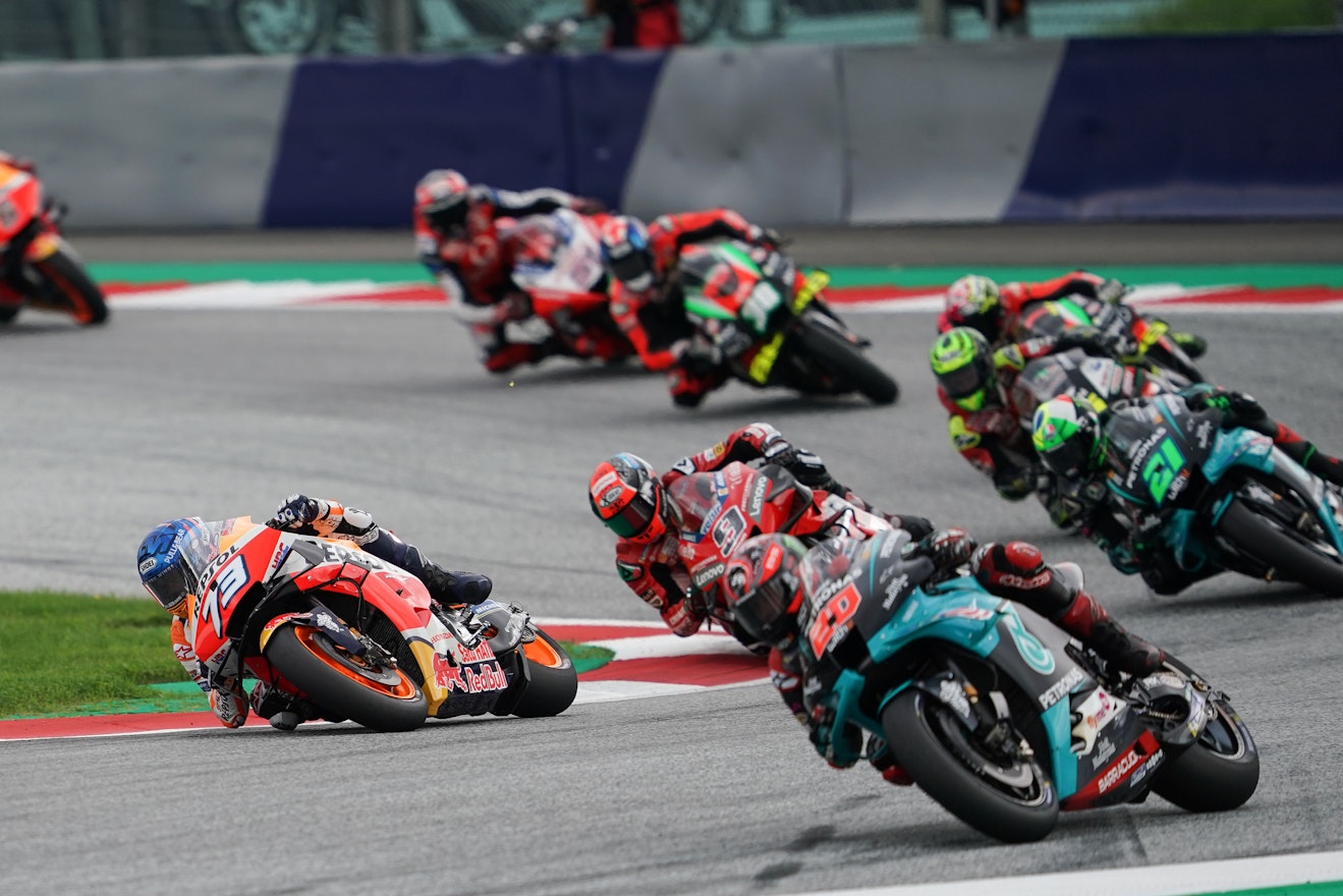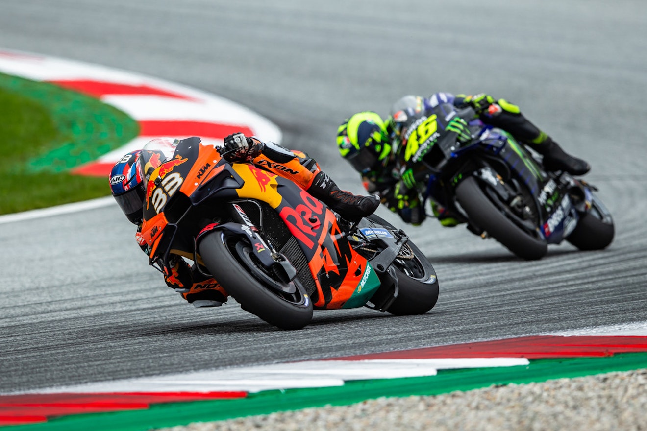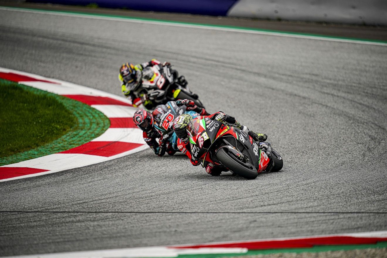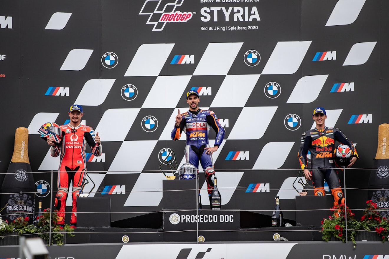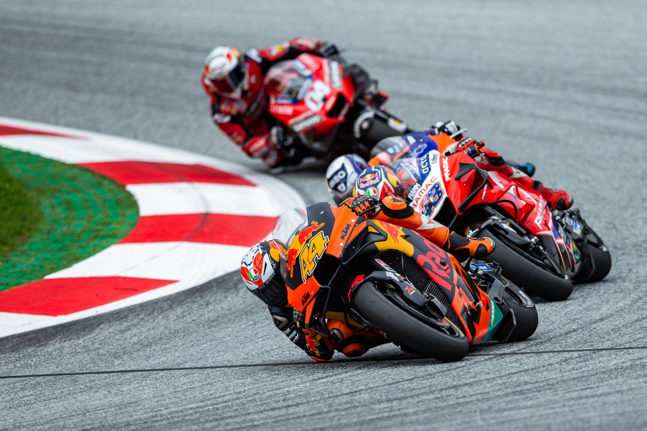 Het was weer een GP om duimen én vingers af te likken, die van Stiermarken. Ondanks dat er voor het tweede opeenvolgende weekend op de Red Bull Ring werd geracet, kregen we toch een totaal wedstrijdverloop voorgeschoteld. Eén waarin de jonge garde de lakens uitdeelde. Op de spectaculaire bail-out van Maverick Vinales - die aanleiding was voor een 'code rood'- na waren er deze keer geen ijzingwekkende crashes. Maar dat wil niet zeggen dat de spanning er niet was. De ontknoping bleek MotoGP op z'n best te zijn. Twee vechtende honden - Pol Espargaro en Jack Miller - én een lachende derde (Miguel Oliveira). Oliveira bezorgde KTM de thuiszege en de tweede winst in vijf GP's in de koningsklasse voor het Oostenrijkse merk. Bovendien was ook deze zege historisch te noemen. Oliveira is de eerste Portugees op een MotoGP-podium én de zege was ook de eerste in de MotoGP voor Tech3, dat KTM's 'tweede' team runt.
