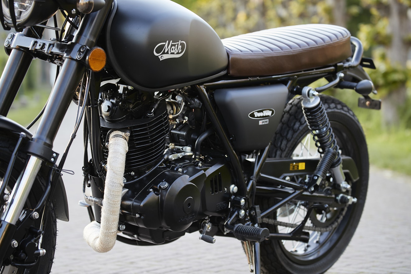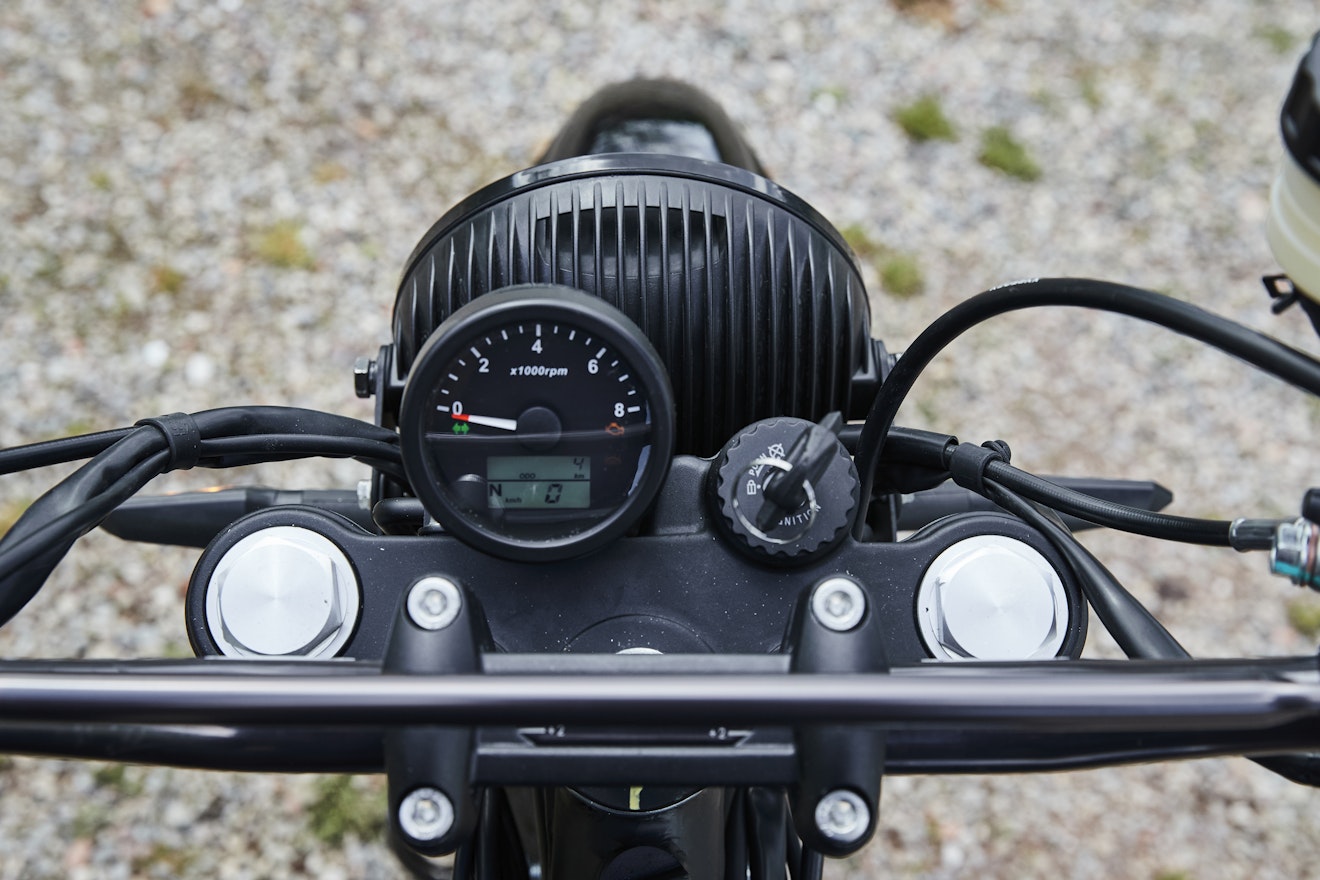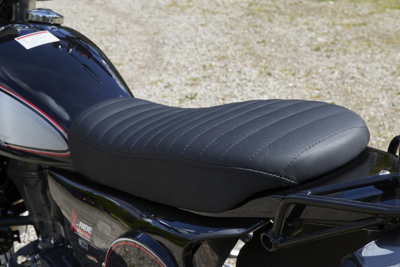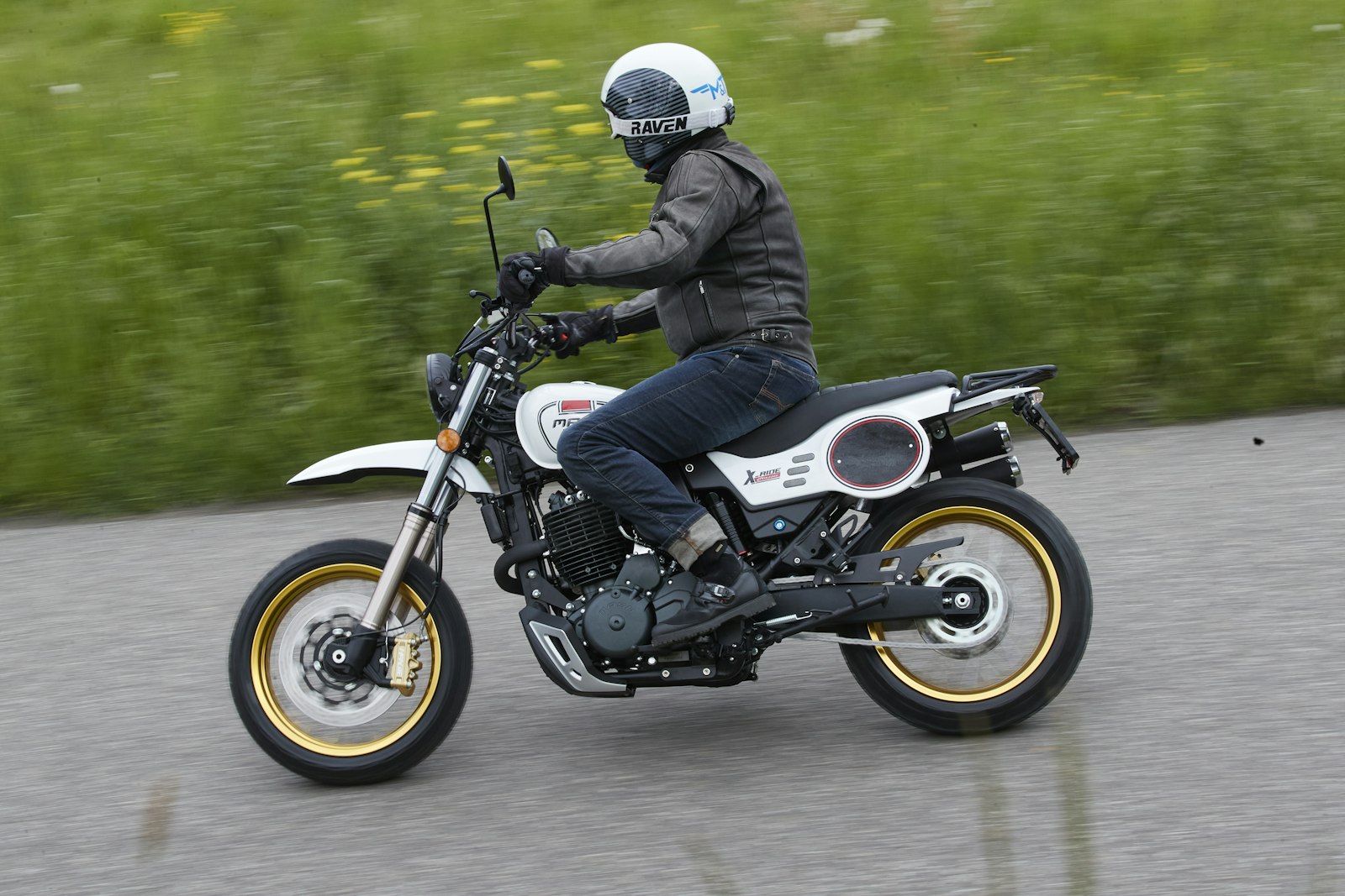 De bezieler van de machines gaat reeds enkele epoques mee en heeft danig veel motorische zaken de revue heeft zien passeren. Vanuit al deze periodes haalt hij enerzijds zijn inspiratie, maar eveneens zijn ervaring om te weten wat nodig is om fijn en zorgeloos motor te kunnen rijden. Meestal zijn het Honda- of Suzuki-achtige krachtbronnen waarvan de plannen ondertussen in publiek bezit zijn gevallen en meestal herkennen we een look die we vroeger reeds vaag eerder hebben gezien. Maar het geheel werkt en de looks zijn geslaagd te noemen. Zo ook bij de volgende klassenbakken, de X-Rides. Bij de 650 lijkt het wel de 1-cilinder Dominator-motor in een XT500-jasje. De zithouding is ontspannen en we krijgen een smal zadel, een breed stuur en goed gepositioneerde voetsteunen. Dit zit lekker crossachtig. Maar verder nodigt de machine niet uit tot hard rijden. Niet dat je eigenlijk weet hoe snel het uiteindelijk gaat, want de tellers zijn voor mij niet leesbaar. Zegt misschien iets meer over mezelf, dan over het dashboard, maar het is alleszins klein te noemen. De gasrespons van de machine is die van een überzachte, dikke mono. Weliswaar met nog niet veel volk in huis in de onderste regionen en al het volk reeds uit huis in de bovenste regionen. In het middengebied is het echter lekker romig vertoeven. Er is reeds veel verteld en geschreven over de stuureigenschappen, en inderdaad, de wielmaten vragen best wat gewenning. Vandaar ook dat vanaf dit jaar (exacte datum moet nog bevestigd worden) de X-rides zullen leverbaar worden met oftewel 17”x 17” wielen, oftewel een 21” x 18” uitvoering. De 650 scoort echter volop in het fijne en aangename rijgevoel dat je erbij krijgt, zelfs al is dat met een typische 1-cilinder trilling. Geen hi-tech, hyperstrak, high-end scheur- of crossijzer, maar een mooie retro offroad machine die volledig past in het toegankelijke karakter van de Mash-familie.
