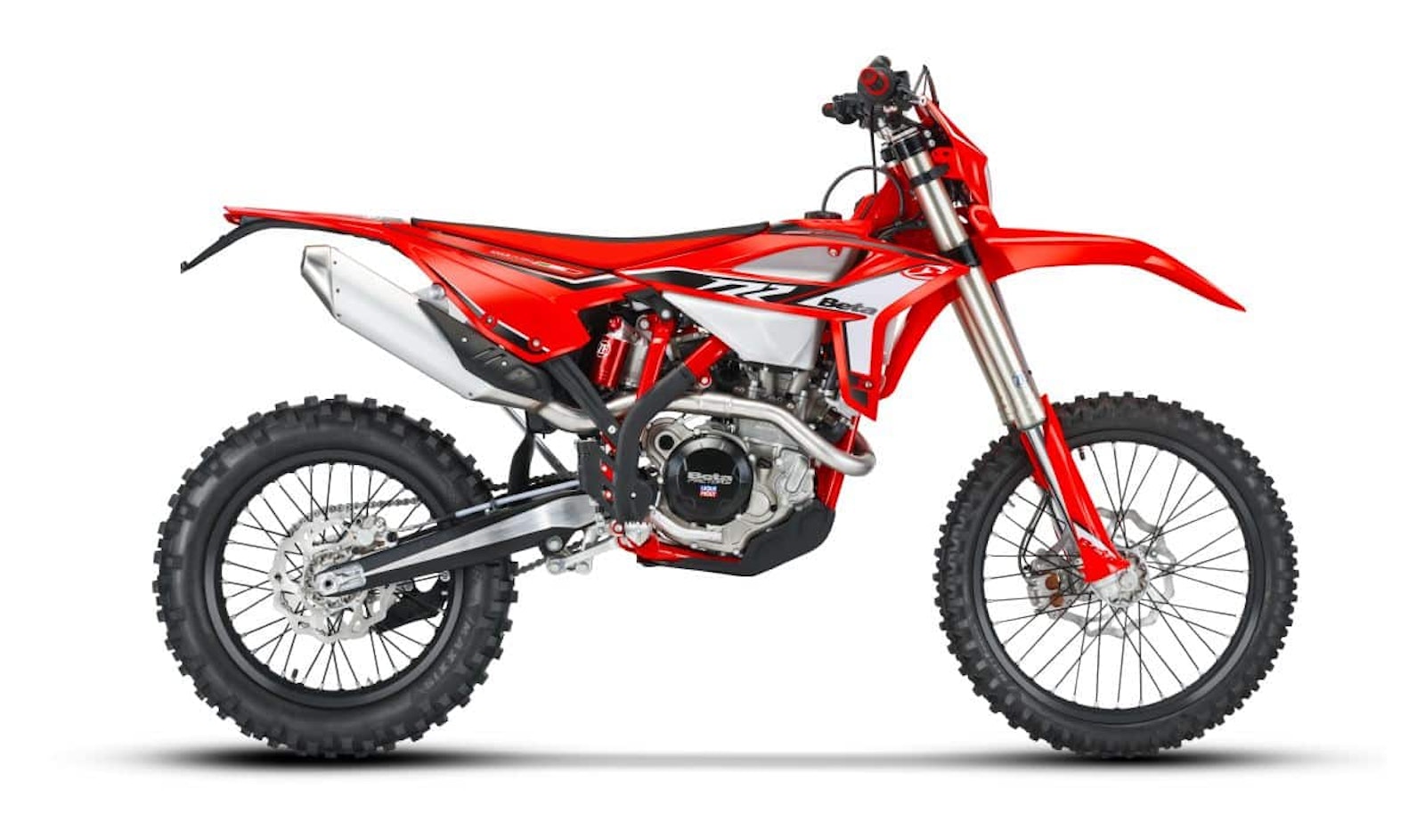 Ook Beta is er vroeg bij met z'n RR-gamma. Het basis-gamma van de Italiaanse constructeur bestaat uit 8 modellen, 4 twee- en 4 viertakten. Daarmee dekt Beta zowat alle niches van de enduromarkt af. Voor al deze modellen geldt dat ze naast nieuwe graphics, ook nieuwe afstellingen voor de schokbreker en (upside-down) voorvork kregen. Daarnaast zijn de buitenste vorkpoten voortaan geanodiseerd op de RR's.