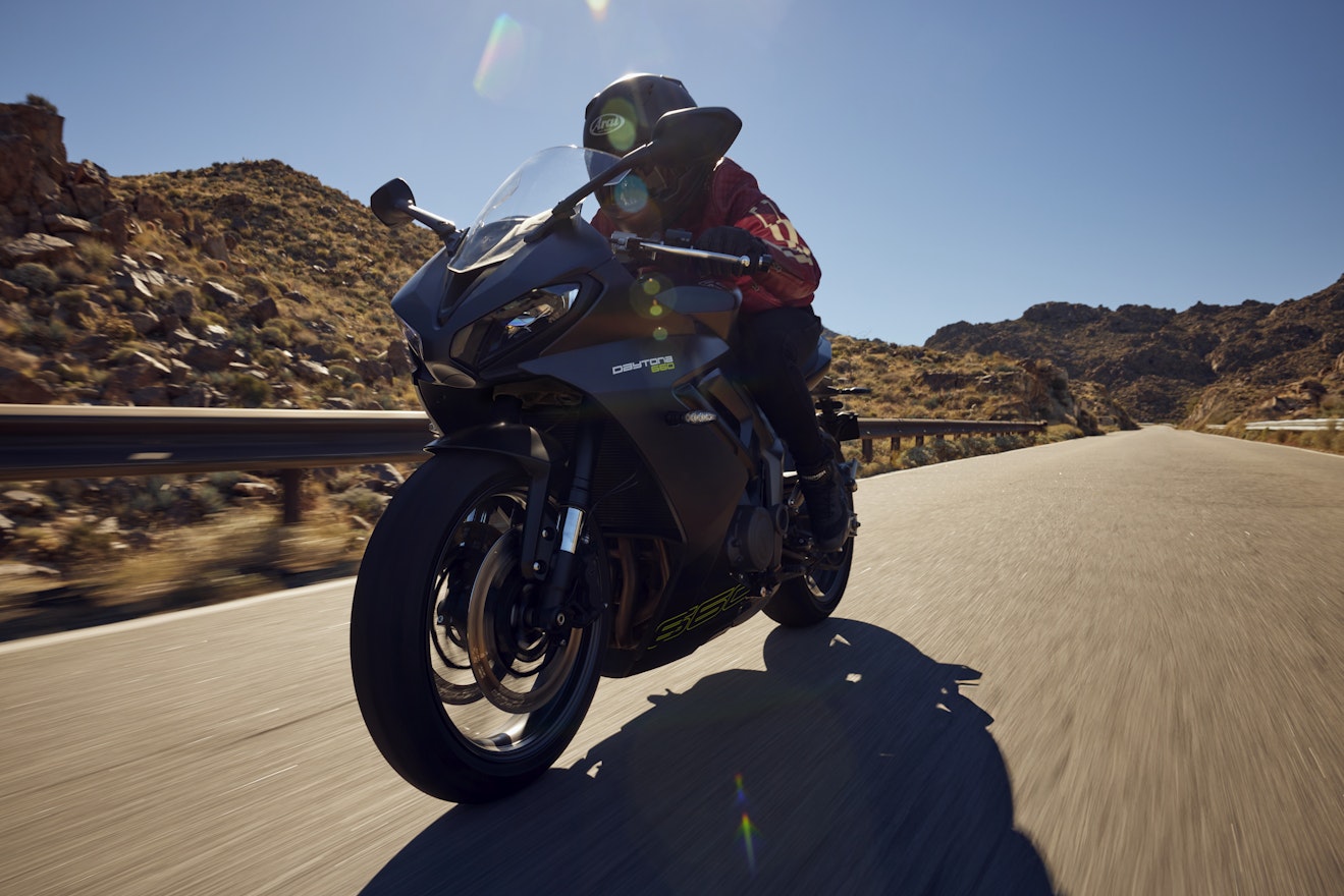 Remmen gebeurt vooraan met dubbele 310 mm schijf, voorzien van radiaal geplaatste vierzuigerremklauwen. Achteraan wordt een enkele 220 mm remschijf geplaatst. De 17-duims wielen zijn van Michelin Power 6 banden voorzien.