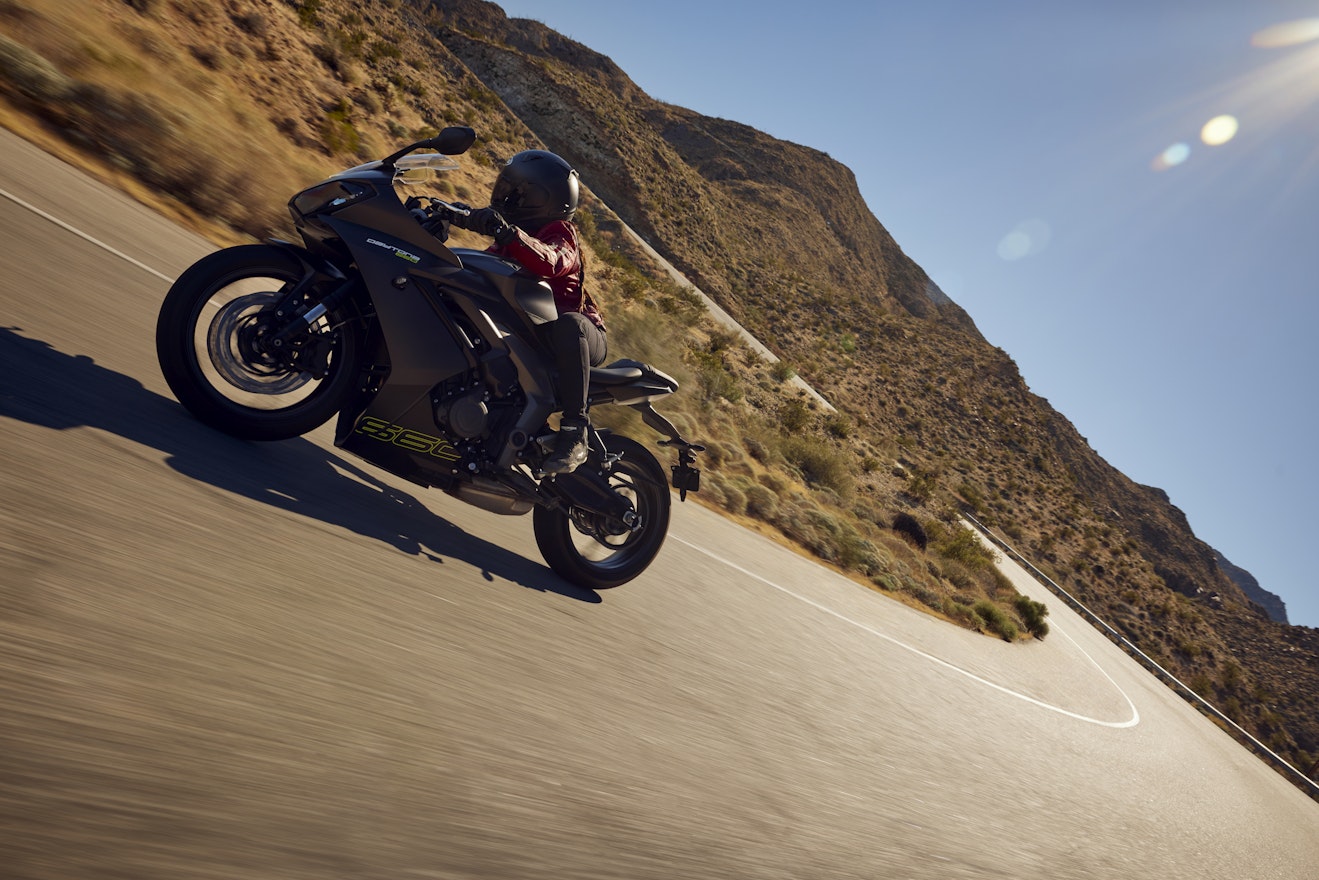 Ook Triumph zet nu opnieuw in op het sportieve segment, al blijft gebruiksvriendelijkheid daarbij primeren op prestaties. De Daytona 660 maakt gebruik van de 660cc triple die we ook als krachtbron van de Trident kennen. Maar Triumph maakte er zich niet zomaar vanaf door het bestaande blok in een sportiever chassis te lepelen. Neen, de motor van deze Daytona is een stuk krachtiger dan die van de Trident. Triumph geeft een piekvermogen van 95 pk op, en dat is 14 eenheden meer dan het geval is op de roadster. Het vermogen wordt beheerst dankzij drie motormappings: Sport, Road en Rain. Het maximale koppel bedraag 69 Nm. Triumph brengt overigens meteen ook een A2-versie van de Daytona op de markt en da’s een logische zet.