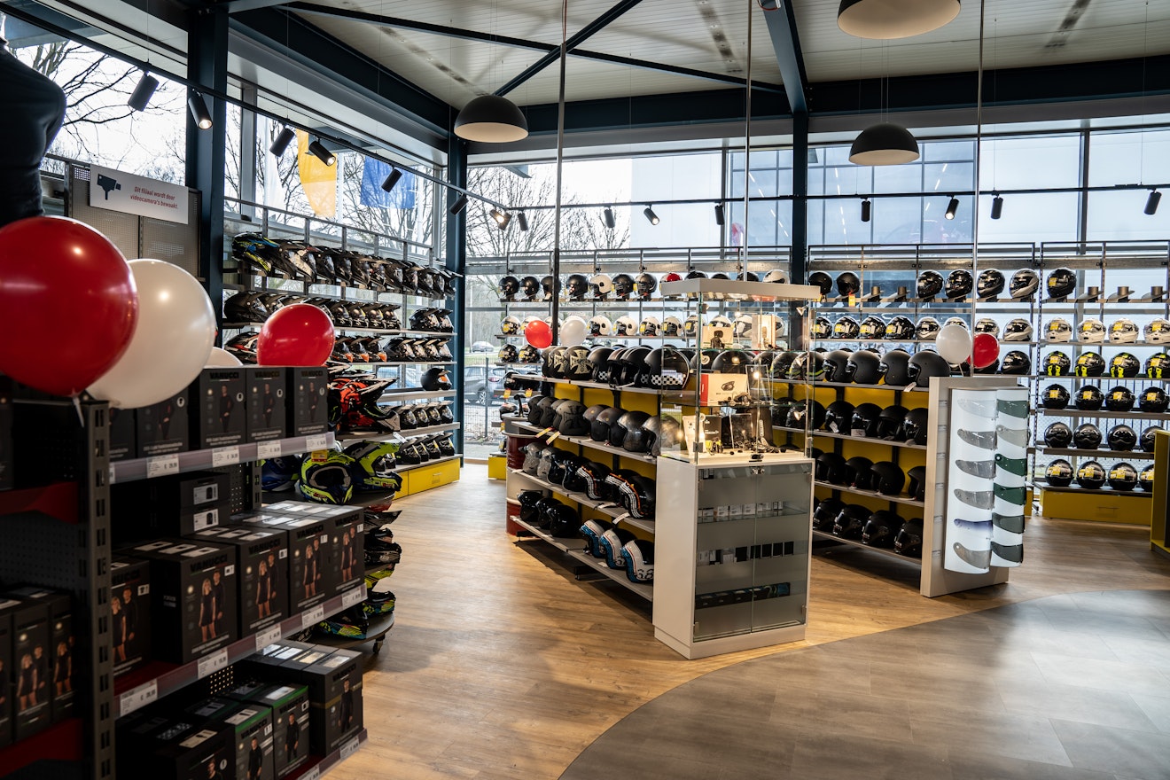 We werden uitgenodigd voor een feestelijke opening en konden kennismaken met het assortiment dat verdeeld is over een indrukwekkende 1200 vierkante meter. Alles waar de motorrijder naast de motor nood aan kan hebben, is hier verkrijgbaar. Denk aan; kledij, communicatieaccessoires, gereedschap, onderhoudsmateriaal, compact kampeergerij, motoraccessoires enzovoort.