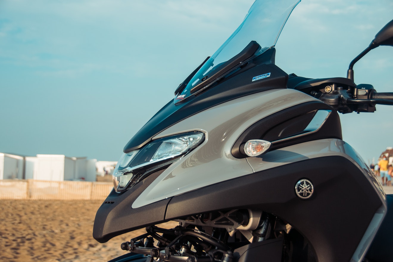 Je kan er natuurlijk niet naast kijken, de Yamaha Tricity 300 heeft drie wielen. Niets nieuw voor de Japanners, want met de Tricity 125 en de Niken zijn ze al een tijdje bekend met deze technologie. Wat wel nieuw is aan deze Tricity, en waarmee hij zich onderscheidt van de Niken en de Tricity 125, is de breedte tussen beide voorbanden. Het lijkt een technisch detail maar het kan een grote invloed hebben op het toekomstig succes van dit model. De breedte tussen beide voorwielen bedraagt meer dan 46 cm, en dat wilt zeggen dat deze scooter als auto wordt beschouwd en niet als motor. Het logische gevolg is dat je met een B-rijbewijs de weg op kan met deze Tricity 300. En zoals ik de intro begon, kan dit voor veel twijfelende automobilisten de doorslag geven, want de stress en kost van een motorexamen valt weg.