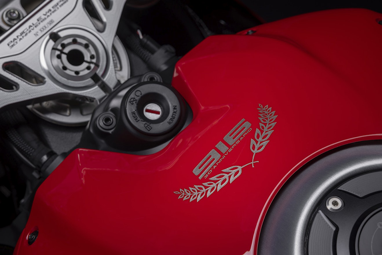 De technische basis van de 30° Anniversario 916 is uiteraard de Panigale V4 SP2 die misschien wel meer een circuit- dan een wegmotor is. Ducati houdt er rekening mee dat de toekomstige eigenaren van de V4 SP 30° Anniversario trackdays willen meepikken. De machine heeft standaard al een Ducati Data Analyser-kit (DDA) aan boord, die voorzien is van een GPS-module.