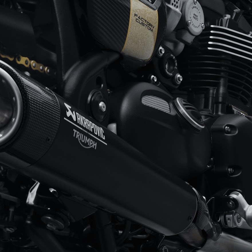 Oogt de Bonneville Bobber TFC als geheel al fraai, dan zit 'the devil' 'm hier echt in 'the details'. De tweekleurige laklaag, handgeschilderde gouden accenten, kroonplaat met serienummer en Akrapovic zijn de meest in het oog springende details.