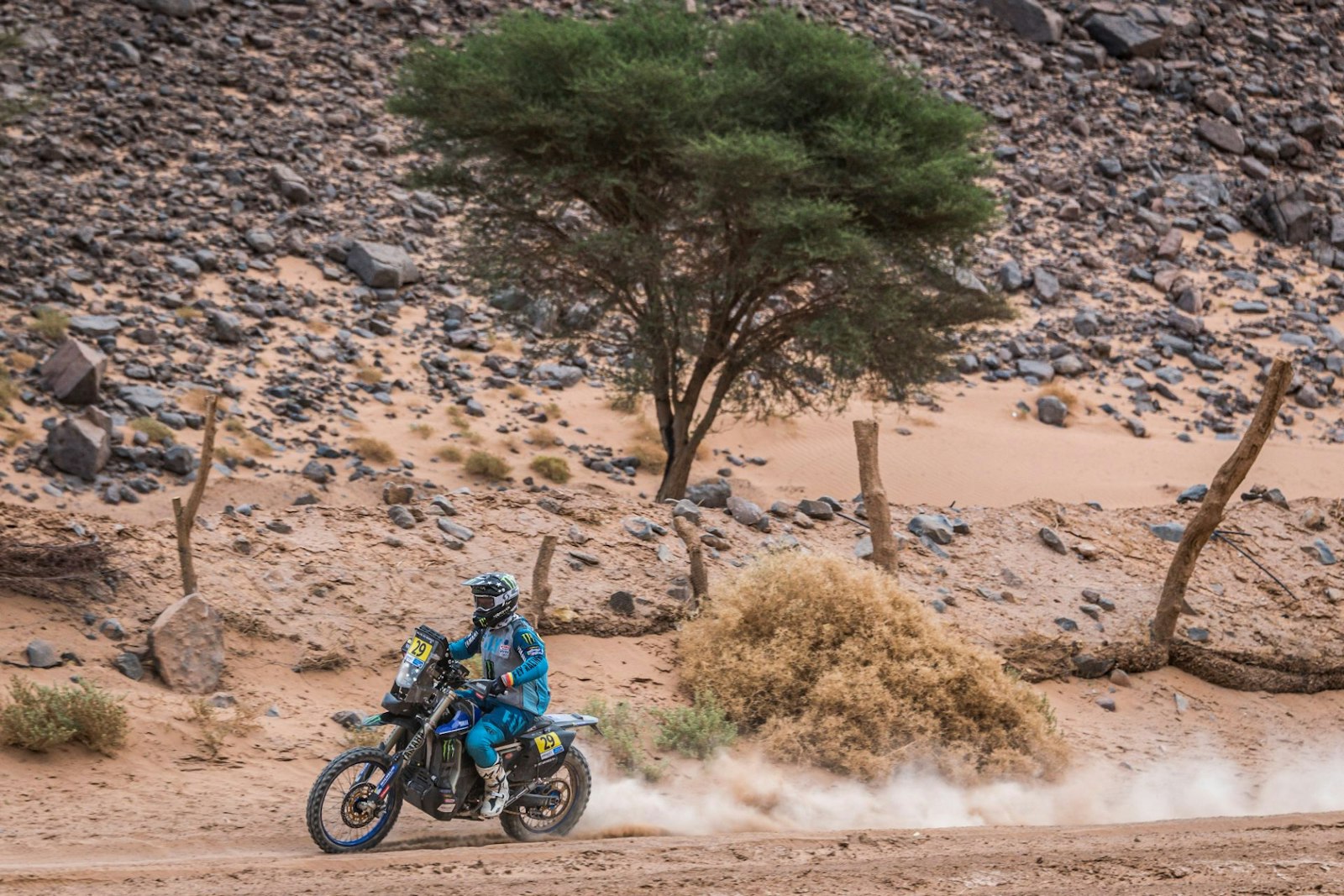 De derde etappe van de Rallye du Maroc 2021, die net alles anderen Zagora als start- en aankomstplaats had, onderscheidde zich door z'n snelle karakter. De pistes waren snel, maar met stenen bezaaid en er waren nooit echte moeilijke passages door de duinen. Daardoor werd ook de navigatie een stuk makkelijker. Logisch dus dat de mannen met rauwe snelheid in deze etappe de kop opstaken. Dat was ondermeer zo voor Monster Energy Yamaha-teamgenoten Adrien Van Beveren (FRA) en Andrew Short (VS). De voormalige AMA Supercross-rijder was daarbij, nét iets sneller dan de Franse strandrace-specialist.