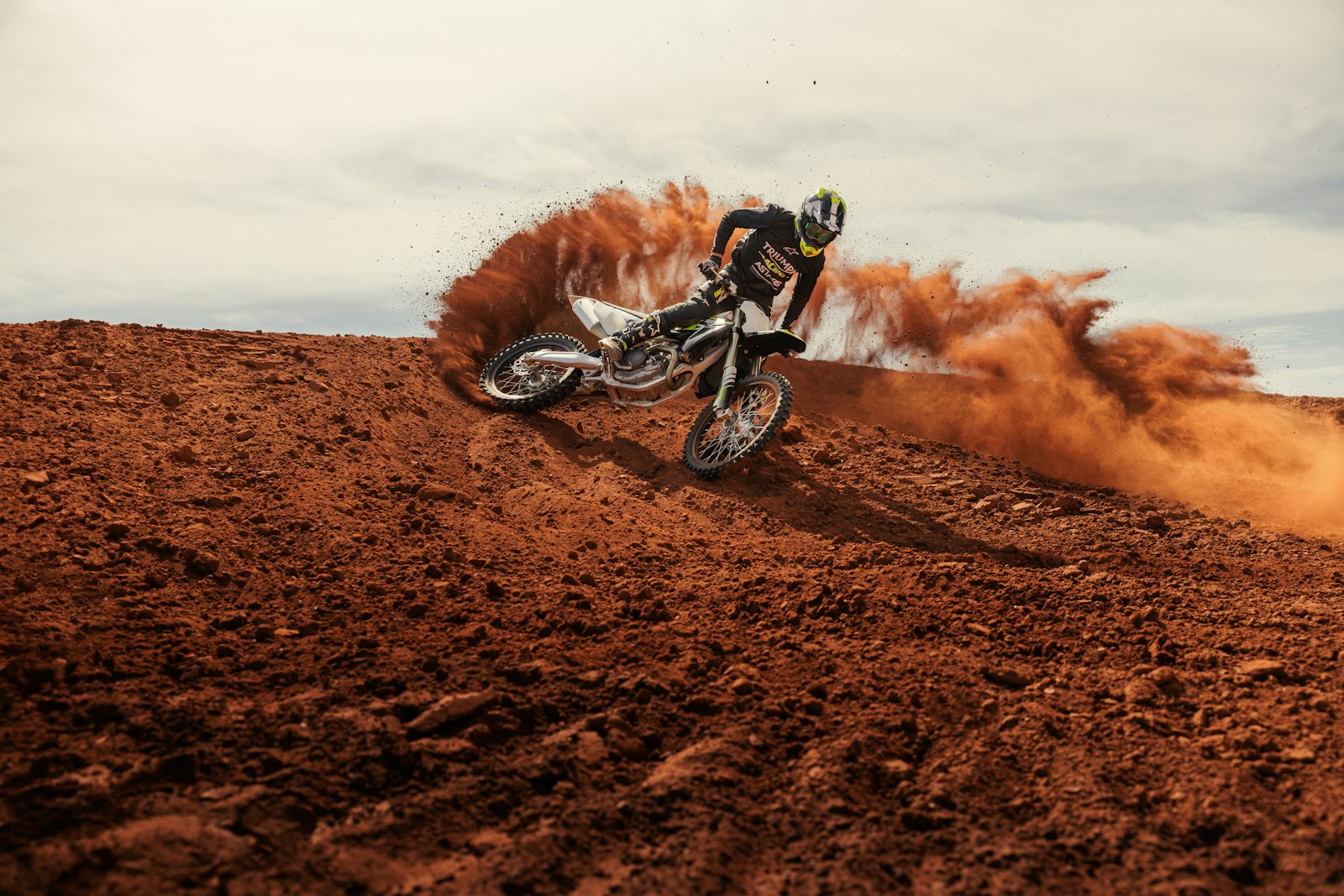 De nieuwe viertaktcrosser werd ontwikkeld in samenwerking met Ricky Carmichael en Iván Cervantes, en is een volledig nieuw ontwerp. De race-aandrijflijn en het aluminium chassis zijn zeer compact en erg licht ontworpen. Zo kreeg het blok aluminium zuigers, speciale koolstofcoating, magnesium carterdeksels en zelfs titanium kleppen. De mapping kan naar voorkeur digitaal worden aangepast.