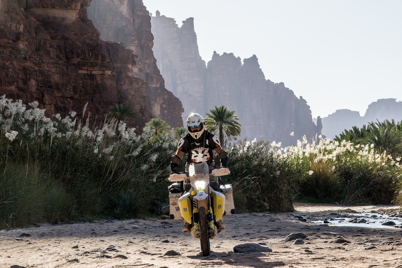 Youtuber Noraly Schoenmaker rijdt op haar vintage Yamaha Ténéré 600 door de paradijselijke Wadi Disah in Saoedi-Arabië. Een epische soundtrack, een GoPro en een drone: meer heeft ze niet nodig om je helemaal mee te trekken in het prachtige landschap.
