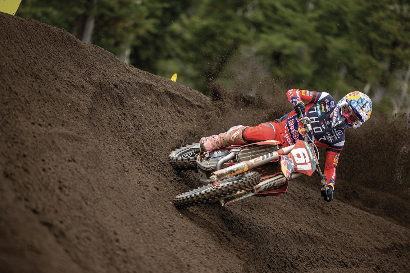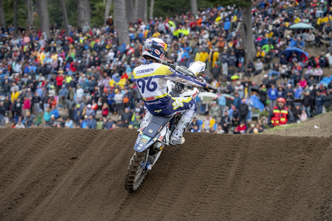 Jago Geerts is sterk aan z'n laatste campagne in het WK MX2 begonnen. De Balenaar won op zaterdag tot z'n eigen verbazing - met slechts een enkele voorbereidingswedstrijd in de benen - de kwalificatie en trok die lijn helemaal door op zondag. De andere Belgen waren minder regelmatig. Zowel Liam Everts, Lucas Coenen (beiden MX2), als Brent Van Doninck (MXGP) wisselden een goede prestatie in de ene manche af met een valpartij in de andere. De video-samenvattingen van de manches in MX2 en MXGP vind je hieronder.