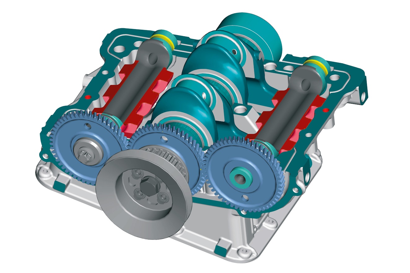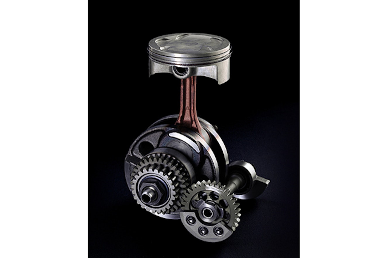 De dikke, intermitterende klappen zijn niet het enige probleem van de ééncilinder. Een ééncilinder heeft verhoudingsgewijs een grote boring – zeg maar de diameter van de zuiger – en een grote slag – de afstand waarover de zuiger op en neer gaat. Dat resulteert dus in een forse zuiger die op en neer staat te stampen. Om de bewegingsrichting van de zuiger in het bovenste dode punt (BDP) of onderste dode punt (ODP) om te keren moet de zuiger eerst worden vertraagd (een negatieve acceleratie) tot hij stilstaat. Vandaar ook de naam ‘dode punt’. Dan wordt hij weer versneld (een positieve acceleratie). Daar is een kracht voor nodig, die evenredig is met de versnelling of vertraging en de massa van het voorwerp: F=m.a. Die kracht wordt geleverd door de krukas, via de drijfstang. De krukas moet zich daarvoor ‘afzetten’ tegen de motorbehuizing. De zuiger krijgt in het BDP dus een klap naar beneden, het motorblok krijgt daardoor via de krukas een even grote klap omhoog. In het onderste dode punt (ODP) gebeurt hetzelfde, maar dan in omgekeerde richting. Het motorblok zit vast in het frame en geeft de klappen daar weer aan door. Zonder tegenmaatregelen zou je dat goed voelen!
