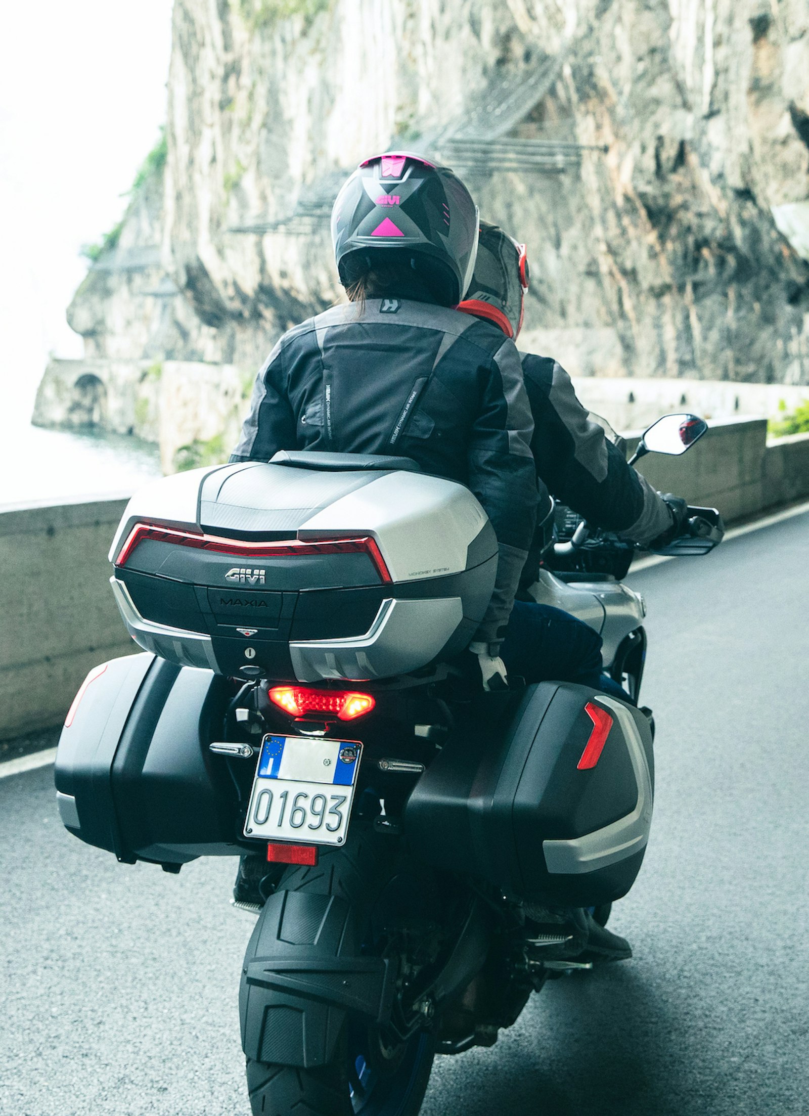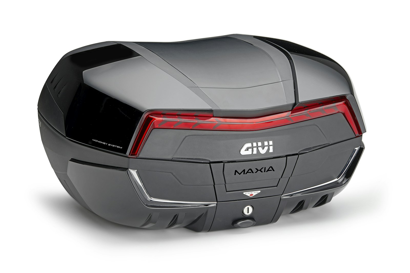 Givi werkt er hard aan om het imago van topcases als een lelijk, maar erg praktisch hebbding te verbeteren. De nieuwe Maxia is ondertussen de vijfde generatie in hun lijn van monokey topcases, gelanceerd in 1991.