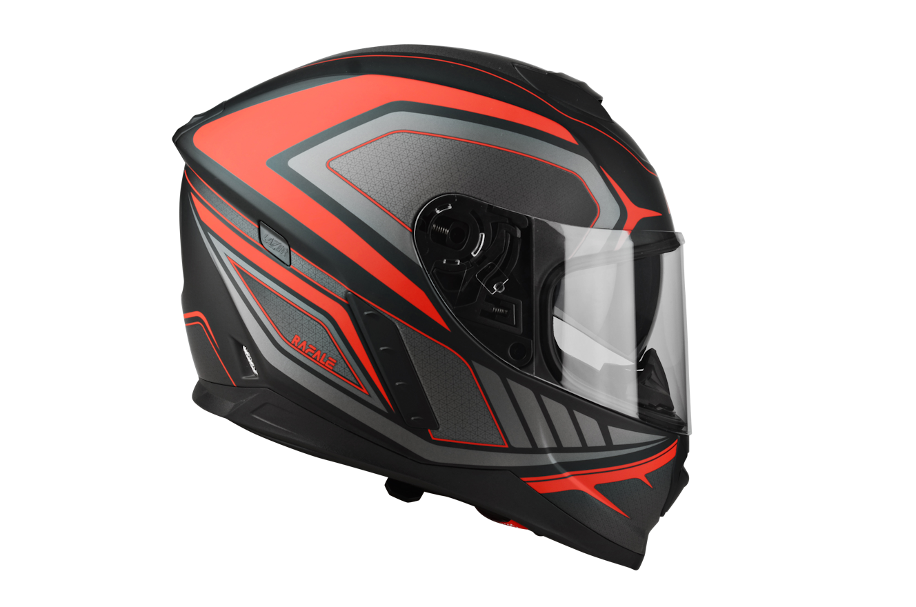 Het Belgische helmenmerk Lazer viert dit jaar z’n 100e verjaardag. Meteen ook een goede reden voor het merk om zichzelf te herlanceren met nieuwe en scherp geprijsde producten. Eén van die nieuwe Lazer helmen is de Rafale, een sportieve integraalhelm. De Rafale valt op door z’n intern zonnescherm.