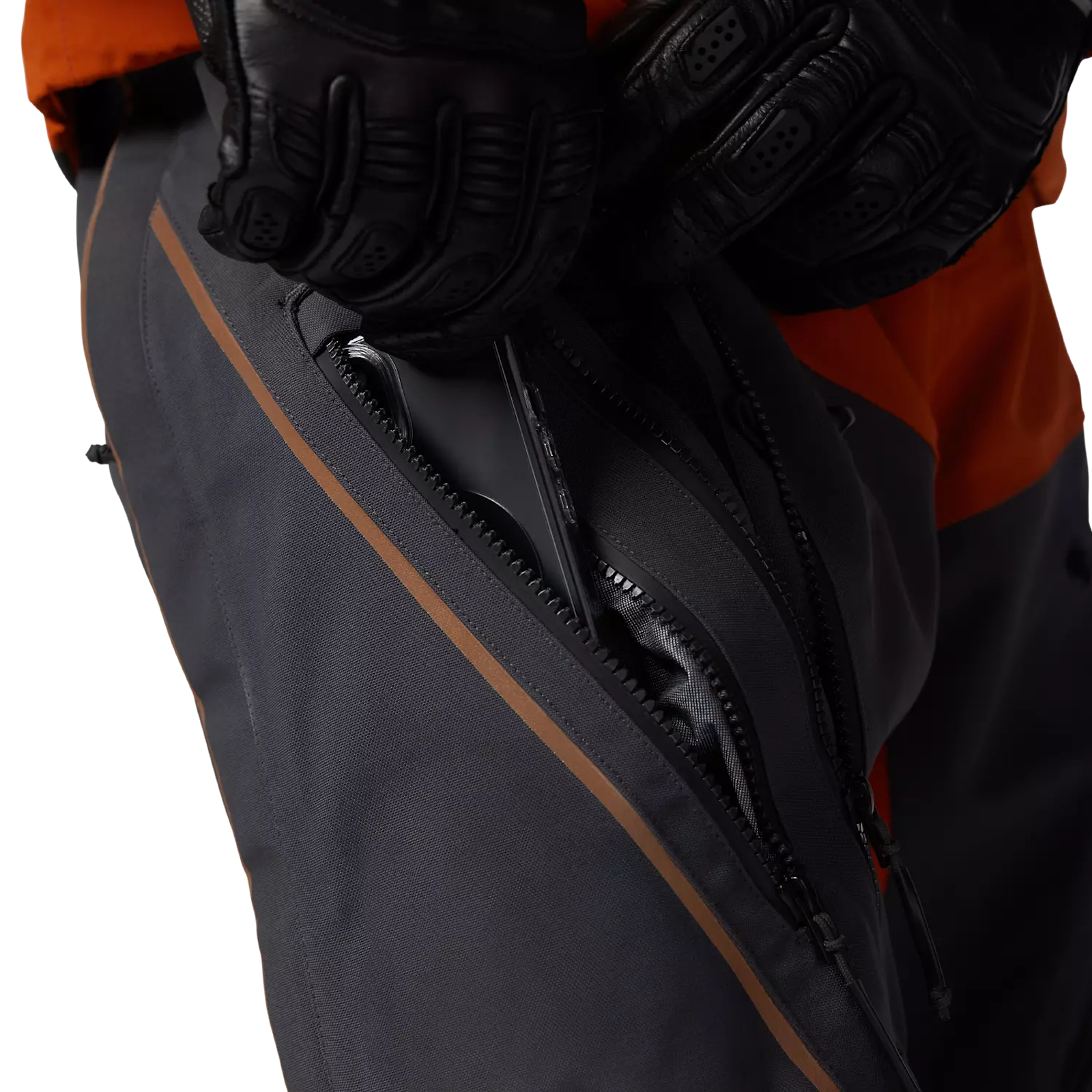 Fox lanceerde niet één, maar drie adventure-kledinglijnen, waarbij de middelste ons de interessantste leek. De Fox Defend ADV-lijn bestaat een jack en een broek. Beide items zijn leverbaar in twee kleurstellingen: zwart en verbrand oranje.
