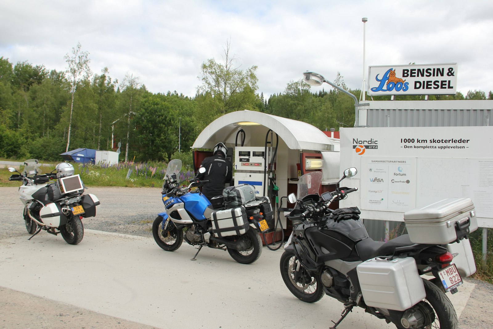 Tijdens de meetings werd gemeld dat in het Hoge Noorden tanken dikwijls een probleem vormt. Dat is hier nog niet zo, maar je moet de tankstations hier wel weten te herkennen, dikwijls zijn dat eigenlijk stopplaatsen voor sneeuwscooters met een bovengrondse tank, niet onmiddellijk iets wat je bij ons frequent tegenkomt.