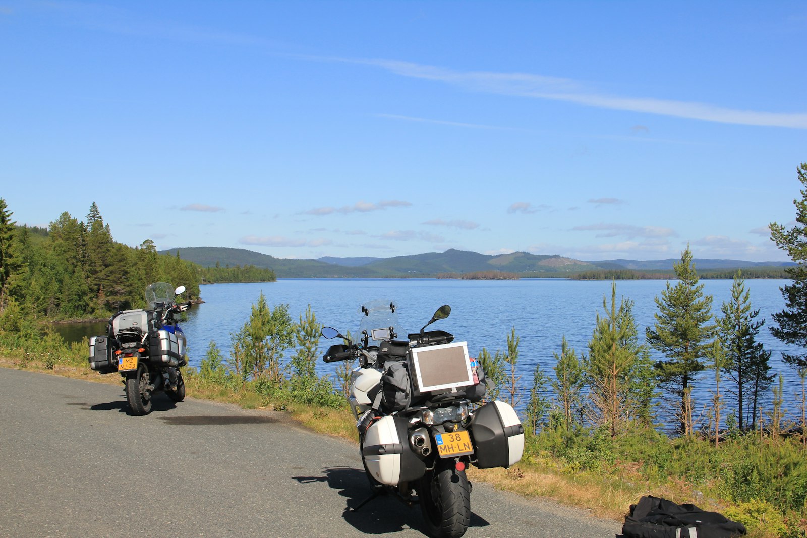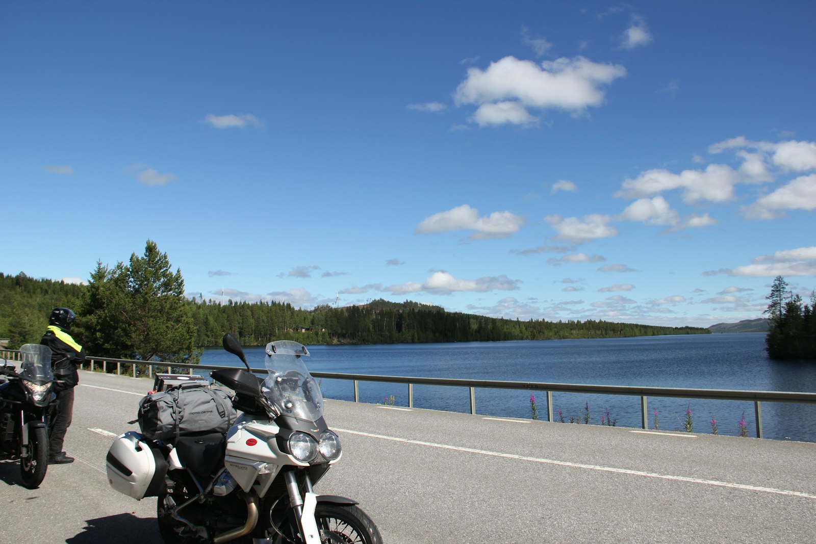 Vandaag alweer schitterend weer en voor het grootste deel nog eens alleen gereden. De route laten plannen door de nieuwe TomTom Rider 550 en daardoor veel ongebaande weg gedaan waardoor ik letterlijk in een wei belande (en met heel veel moeite terug uit). Daarna enkel nog gebaande weg genomen en weer tot dezelfde conclusie gekomen: hoe is het mogelijk dat wij hier met onze kliek nooit eerder gepasseerd zijn? Je vindt hier letterlijk duizenden kilometers goede weg zonder noemenswaardig verkeer of flitspalen. Zweden is gewoon één groot racecircuit.