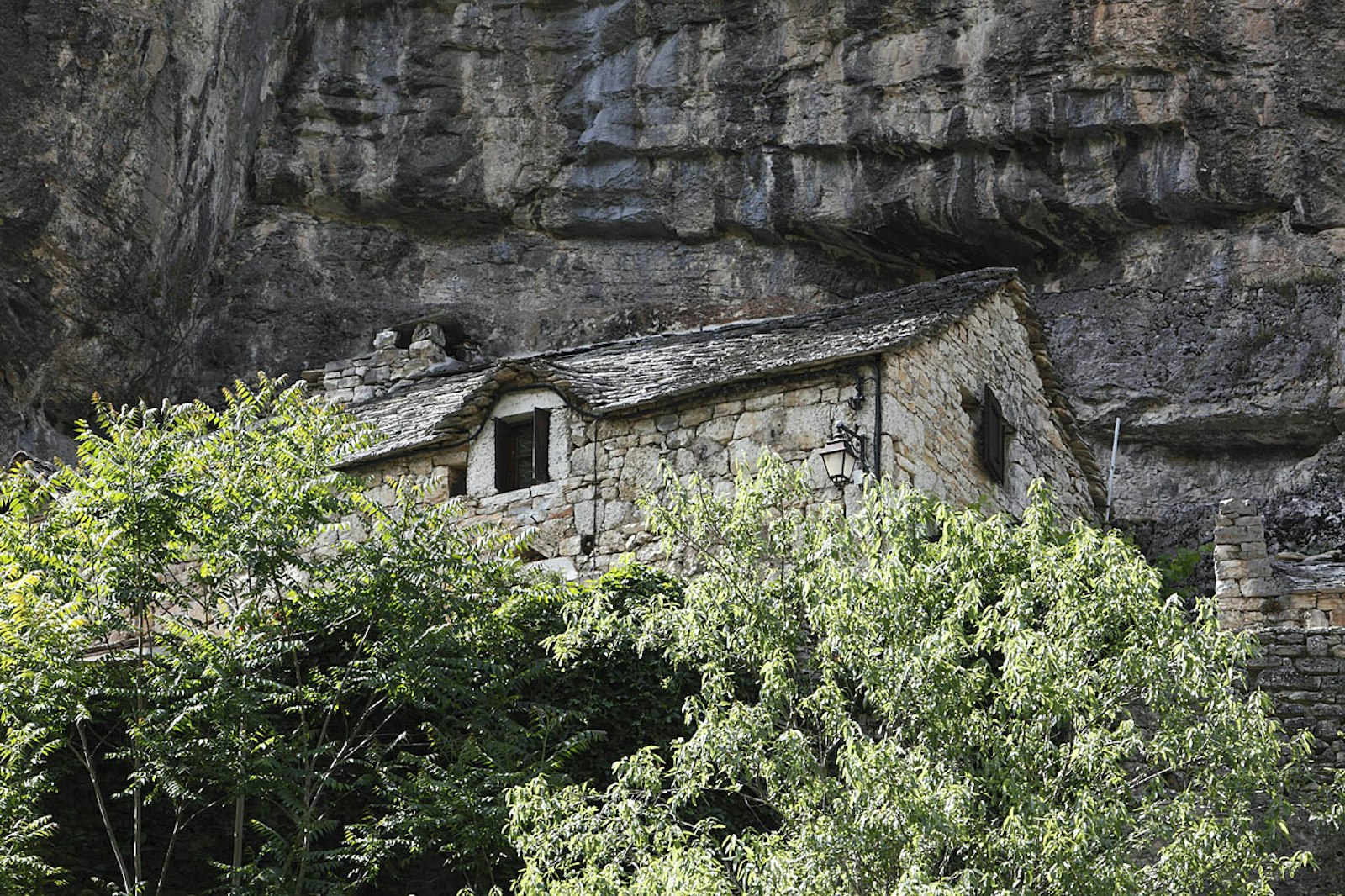 “De belastingsregels hebben het uitzicht van de huizen bepaald. Omdat de woningbelasting bepaald werd op basis van het aantal vierkante meters grondoppervlak, werden de huizen als omgekeerde kegels gebouwd: onderaan zo klein mogelijk met daarboven zoveel mogelijk extra ruimte”, legt André uit. We ontmoeten hem in Sainte-Enimie. Onder ons peddelen bonte kano’s over de Tarn, hier in de bovenstad slaagt André er moeiteloos in om de geschiedenis tot leven te brengen. In zijn rode cape struint hij door de steegjes en vertelt hij de geschiedenis van Hedwig, Christine, Jacqueline en Claudine die zich in traditionele klederdracht voorbereiden op het middeleeuws spektakel van het dorp. We zouden nog uren kunnen vertellen over de rest van onze rit over bekend motorterrein met dorpjes zoals Meyureis, Florac en de verlaten hoogvlakten van Causse Méjan en de Mont Aigoual. Maar we volgen liever André en zijn verhalen naar de geschiedenis...